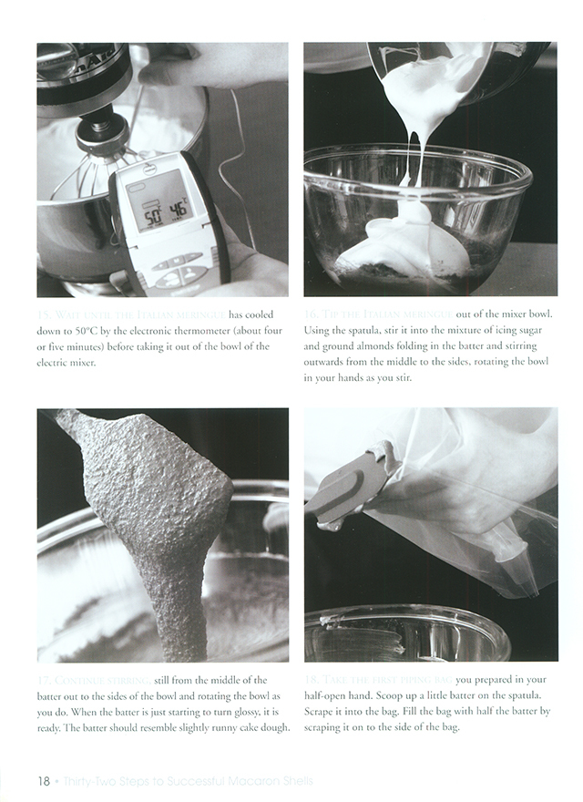 マカロンの基礎的な作り方から必要な器具、チョコレート、ローズ、カシスといったクラシックなフレーバーからオリーヴオイルとヴァニラ、ライムとバジルといったシグネチャーと呼ばれる独創的なものまで幅広いマカロンが掲載されている。