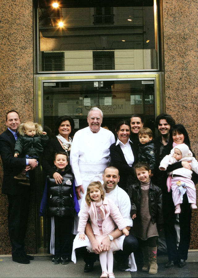 The shop was founded in 1953 by Maurice Bernachon. The legacy was then carried on by his son, Jean-Jacques Bernachon, and today by his grandson, Philippe Bernachon, with the character of the chocolate remaining largely unchanged across generations. Notably, Jean-Jacques Bernachon married the daughter of Paul Bocuse, meaning that Philippe Bernachon counts both Paul Bocuse and Maurice Bernachon among his grandfathers—two towering figures in French gastronomy.