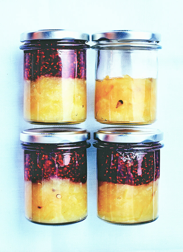 Alongside classic fruit confitures, the book features many inventive combinations, such as lemon, lime, orange, and vanilla; lychee and raspberry; pear and Earl Grey; fig, walnut, and cognac; and apricot with lavender.