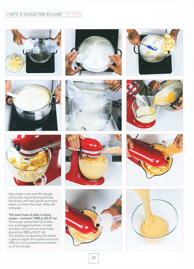 This book presents his knowledge, vision, recipes, and philosophy surrounding eclair-making in generous detail. From the fundamentals of choux pastry to creams, glazes, and decorative finishes, each process is explained step by step with clear photographic guidance.