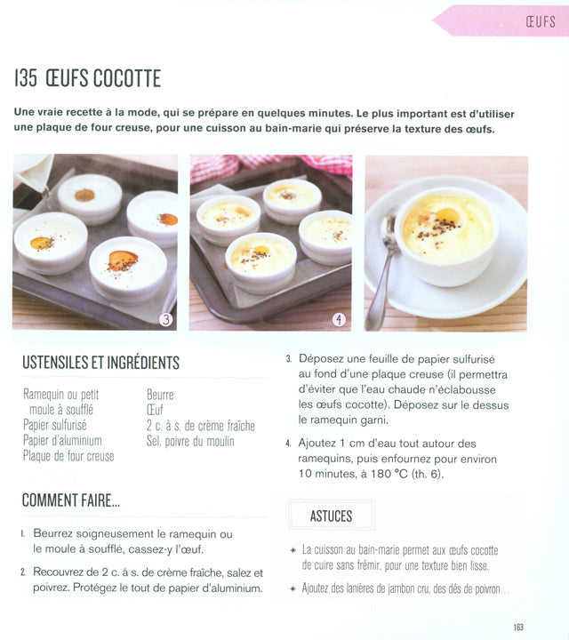 ソース、野菜、フルーツ、肉、家禽、魚介、卵、お菓子などチャプターごとに分かれており、そのそれぞれに基礎的なテクニックが解説されている。